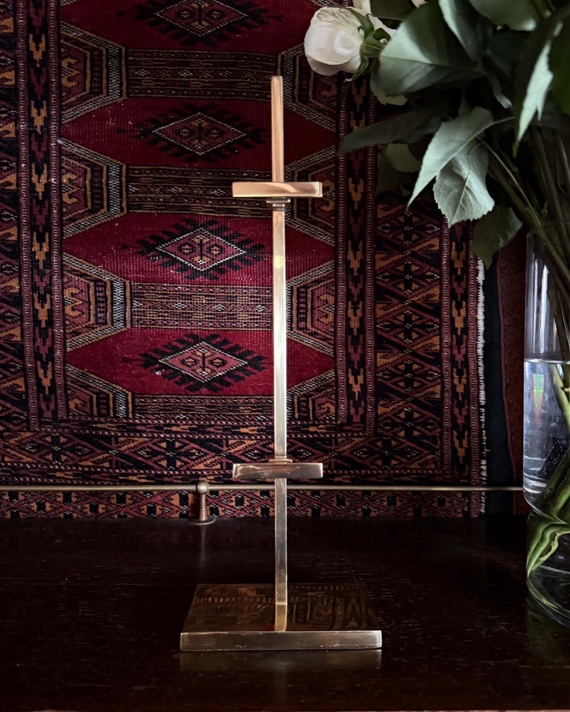 This petite brass easel elevates those little pieces that deserve some extra attention. Its smaller size is perfect for displaying books, unframed paintings, or smaller framed book plates or post cards. The golden brass reads like a frame around unframed paintings, adding museum-like presence to any room. Style it on a desk, entry table, bookcase, or as the finishing touch of a layered vignette.